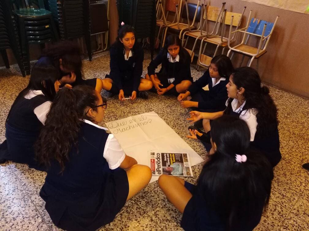 Involucramos a niñas, niños y adolescentes en procesos de indagación, reflexión y diálogo. Facilitamos la articulación entre distintos sectores de las escuelas para mejorar sus conocimientos sobre las violencias, la prevención, identificación y atención. Capacitamos a estudiantes y personal docente en la metodología de aprender haciendo para crear cuentos y videos como herramienta de empoderamiento.